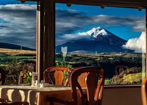 El comedor posee una vista espectacular hacia el Cotopaxi, Antisana y Sincholagua, Quito, Los cerros de la Marca (Mitad del Mundo) y el Cotacachi.